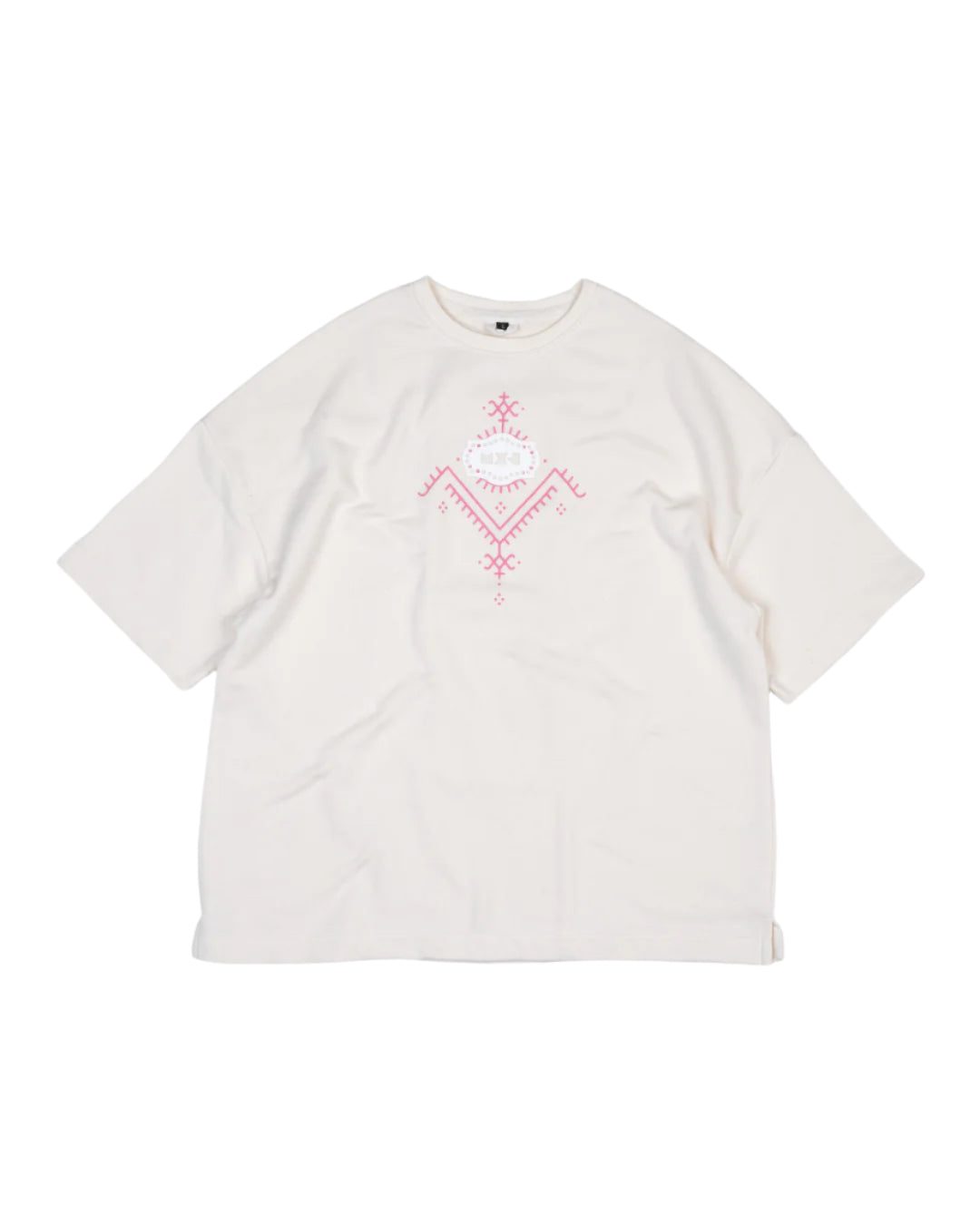 Soft feel, bold expression. This relaxed-fit tee is crafted from premium 220 GSM cotton terry for that plush, breathable comfort you can wear all day. Featuring eye-catching screen-printed tribal-inspired artwork on twill patch and the MXJ emblem at center, it blends cultural edge with modern streetwear flair. Made to stand out — not just fit in.