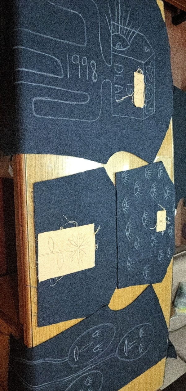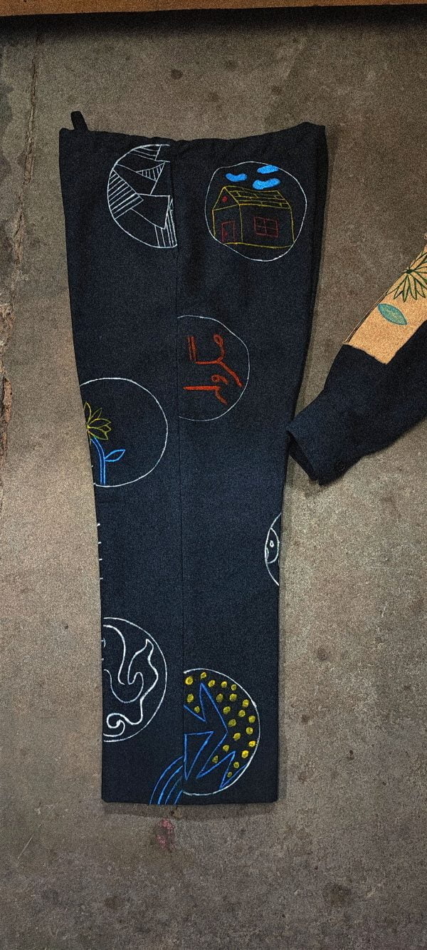 Hand-painted illustrations with carefully selected patches sewn onto the jacket, adding to its uniqueness elements on jacket are psychedelic illusions which are fetched by LSD hallucinogenic chemicals used to produce a range of visuals and these illusion are carefully designed on the jacket. This handmade jacket took 20 days to complete as it reflects the wearer's individuality with its unique combination of artistry and practicality.