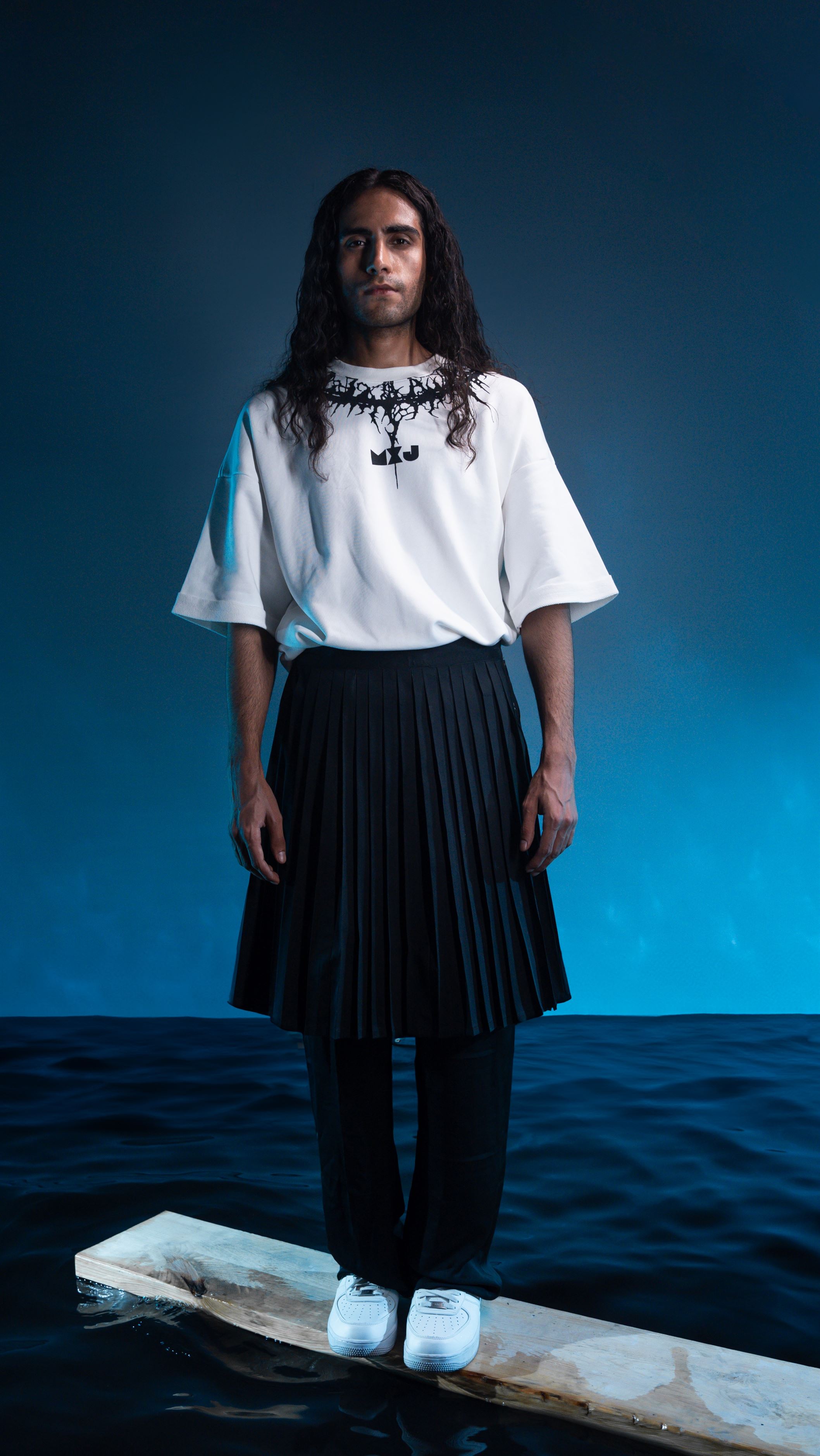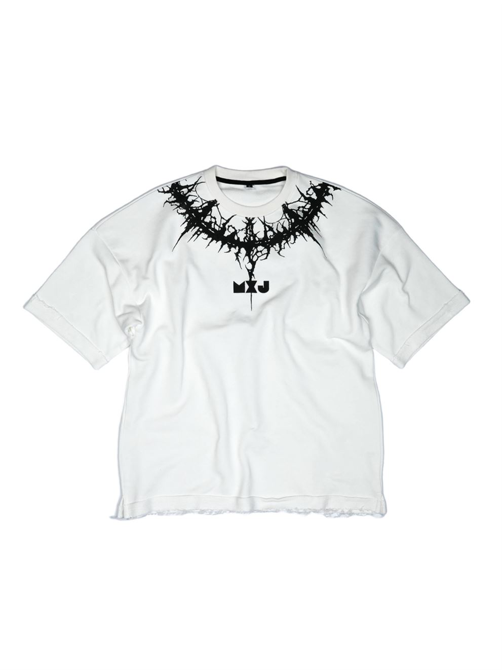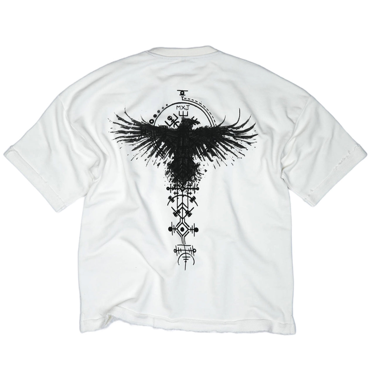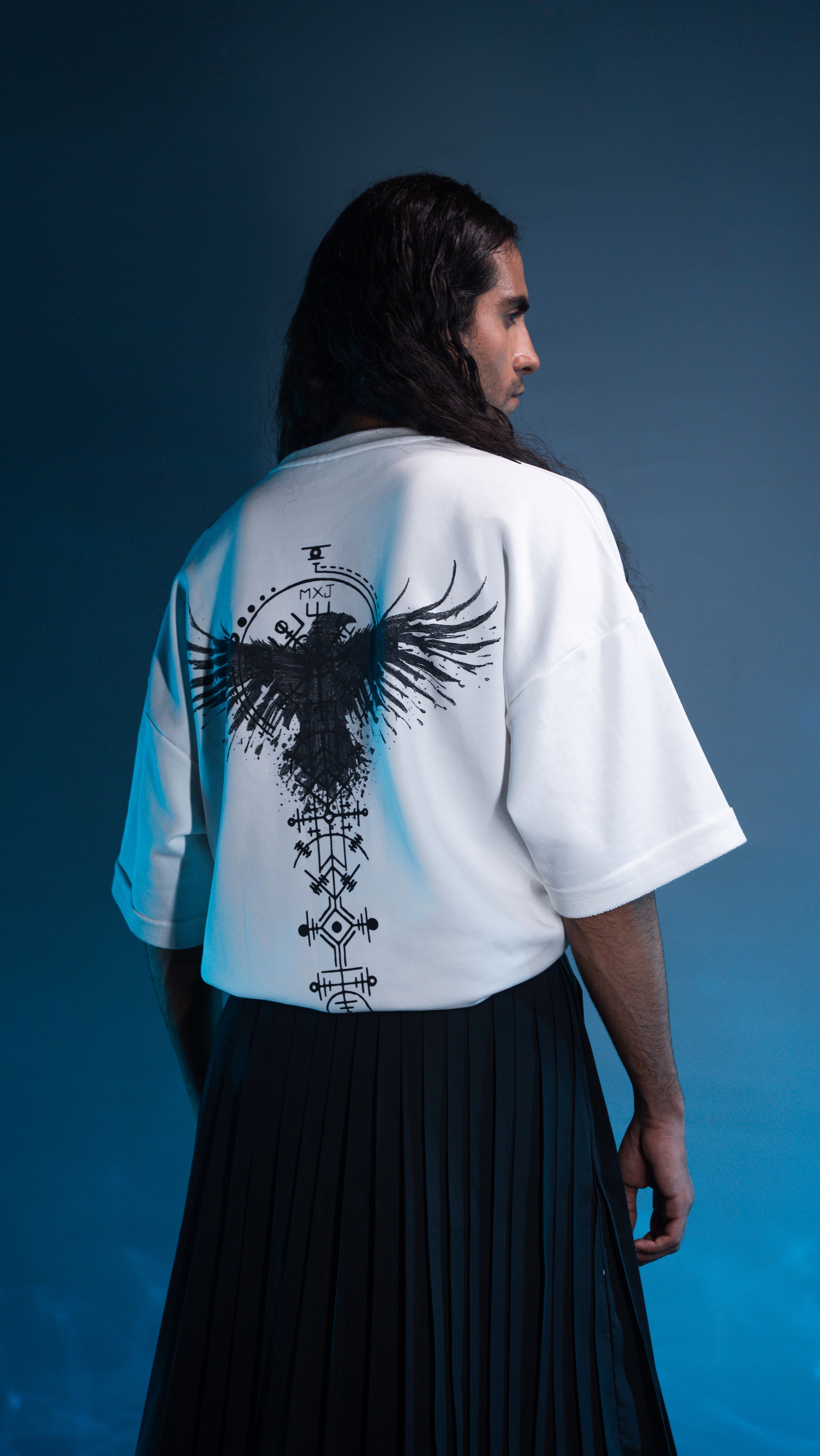 Embrace the wild within. Our white cotton shirt adorned with a majestic black Skybeast, soaring amidst intricate patterns on front. Elevate your style with a touch of the extraordinary