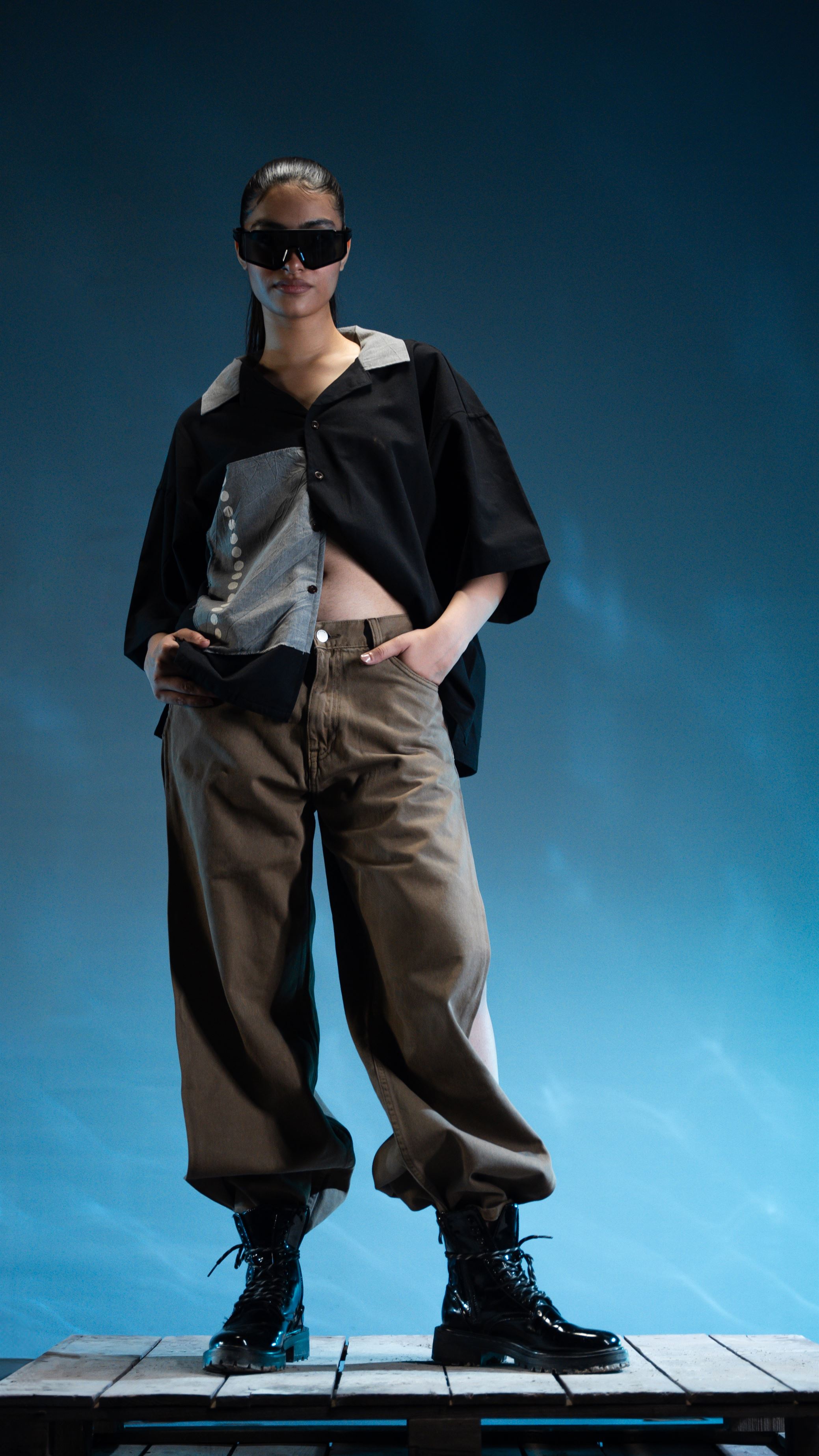 Wrap yourself in comfort and style with our black Cat shirt, crafted from 100% cotton in a soothing black hue., adding a touch of whimsy to your look. Enhanced with subtle grey patchwork detailing, this shirt exudes understated elegance while showcasing your love for nature. Embrace casual sophistication with every wear.